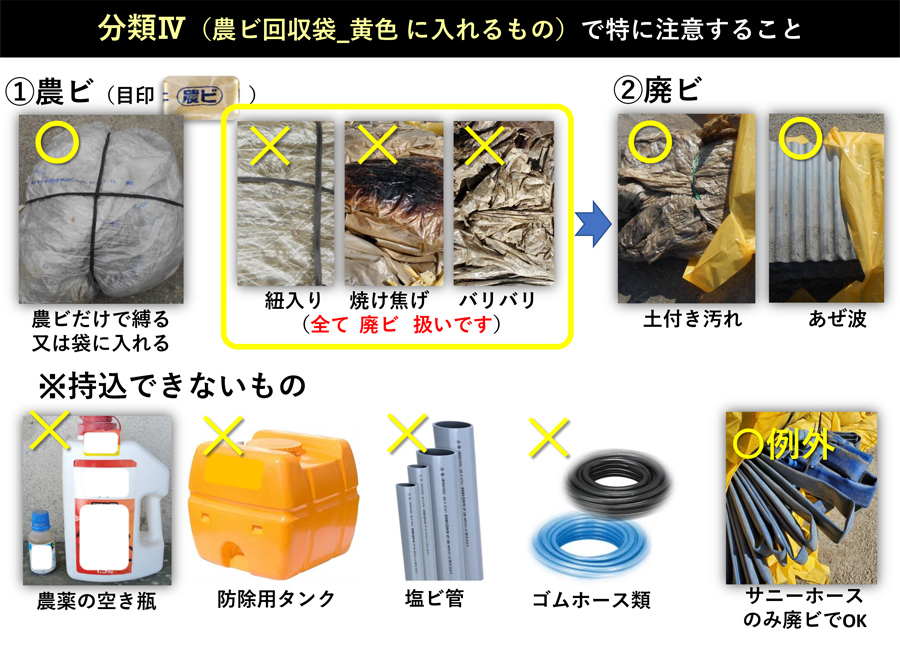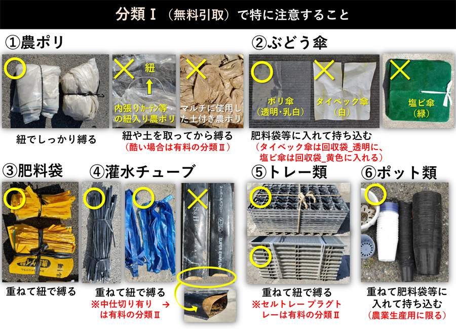 - 農薬の容器および農業生産以外のプラスチック類は持ち込めません。